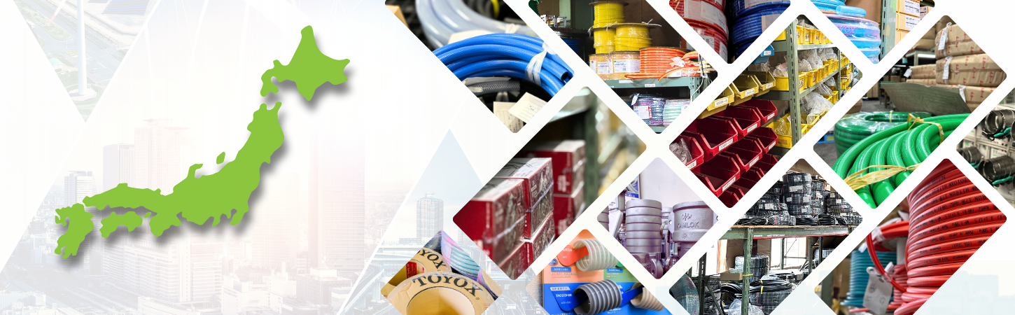 東京・大阪の大型物流センターをはじめ、札幌、仙台、福岡の拠点に業界随一のホース・継手の在庫量を確保しています。拠点間の連携により、災害や品不足時にも安定した供給を実現してきました。